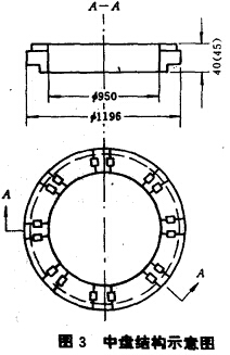 2)适宜增大中盘厚度,延长磨损时间。中盘是止推盘部的主要磨损部件,因其硬度小于上、下盘,故正常磨损量较上、下盘大。适当加大中盘厚度,延长磨损周期,可避免因中盘短时间内磨损后,传动伞齿轮副啮合间隙减小而顶齿。为此,将中盘厚度由40mm增至45mm。